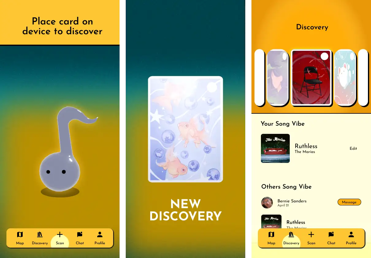 Tune Trade is a fusion of social apps and trading card collections that enable people to build connections through the exchange of music tastes. Inspired by childhood games like Pokémon and Neko Atsume, Tune Trade encourages the playful expression of people's unique musical identities. Music taste is a powerful indicator of our personal and social identity. People worldwide share their "Spotify Wrapped" on social media each December to connect with friends, family, and fans. However, beyond this annual celebration, there are little to no expressive tools to help music lovers connect. Tune Trade incorporates nostalgic interactions and playful engagement to create an experience that encourages people to connect. Both trading cards and the app were designed to work together to enhance the overall experience better. A small local launch had people loving the idea, and connecting with each other through the product. Many suggested branching out to other topics such as movies and food- a playground of icebreaker topics.